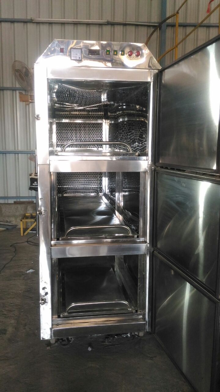 3 Body Mortuary Chamber fabricated fully in stainless steel. We are manufacturing 2 door, 3 door, 4 door, 6 door, etc Mortuary chamber based on the customer request.Fit Branded Emerson copland compressor. Seperate compressor System for each one compartment. For Cooling copper coil & puff insulation is used. Stainless steel structure with moving balls. fit on Each door with Magnet beading with locking type. Digital Temperature controller with display for Each one unit. Water drain system at all stages.
