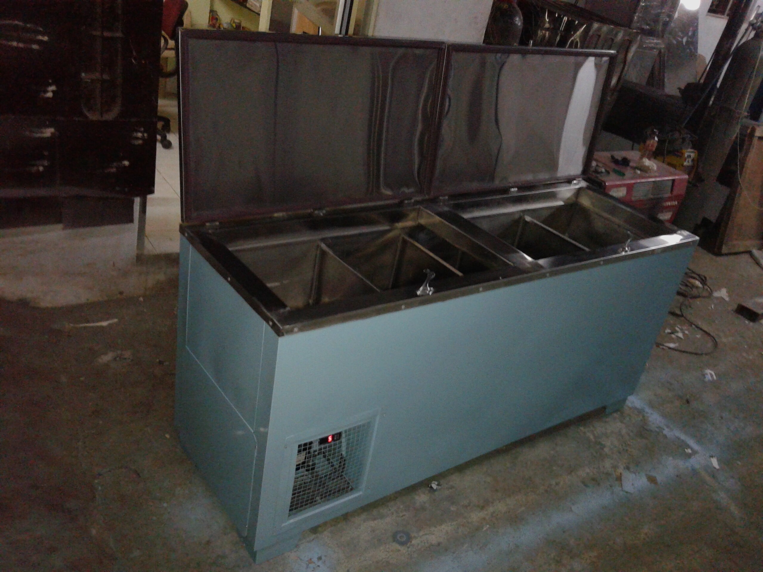 We are Manufacturing the Horizontal deep freezer also. In deep freezer total inner & outer body fabricated fully in stainless steel. In deep freezer door type ( 2 door & 3 door) & capacity based upon the customer requirement. fit Emerson copland Branded Compressor. Copper Coil & puff insulation is used for cooling. In horizontal deep freezer R 134A Gas used for refrigerant. In Deep freezer we fit the Digital Temperature Controller with Display.