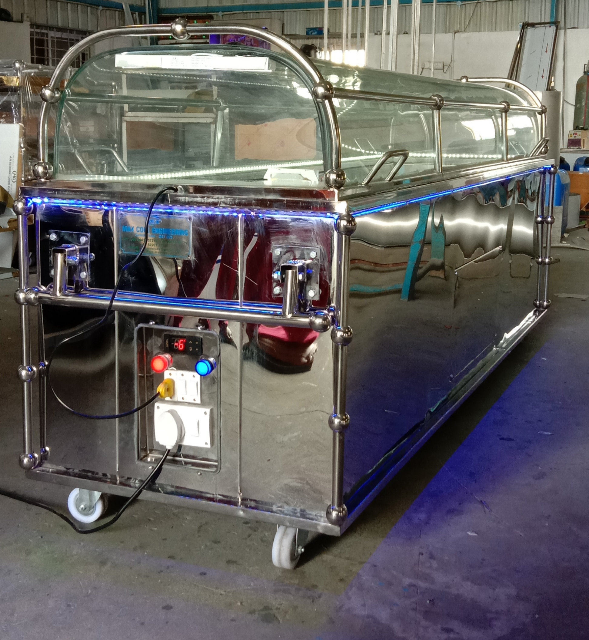 This Model Body fully fabricated Stainless Steel . This model top glass fabricated in original 8 mm thickness glass type.This model has stretcher.MC 008 heavy model has inner and outer LED Light Decorated.MC 008 heavy model Compressor we fit Emerson Copland (kirlosker).This compressor having one year replacement .MC 008 heavy model having 1 year free service in case the box have any manufacturing defect we give the free service .MC 008 heavy model has compressor watts 650 watts.MC 008 heavy has Digital Display with temperature controller. MC 008 heavy top glass has 4 handle in four side of the frame.so easy to removing and closing.MC 008 heavy model has 5 side cooling system.MC 008 heavy model easy to moving in bottom side.MC 008 heavy model we given 3 pin cable for electric purpose. MC 008 heavy model having stainless steel structure.
