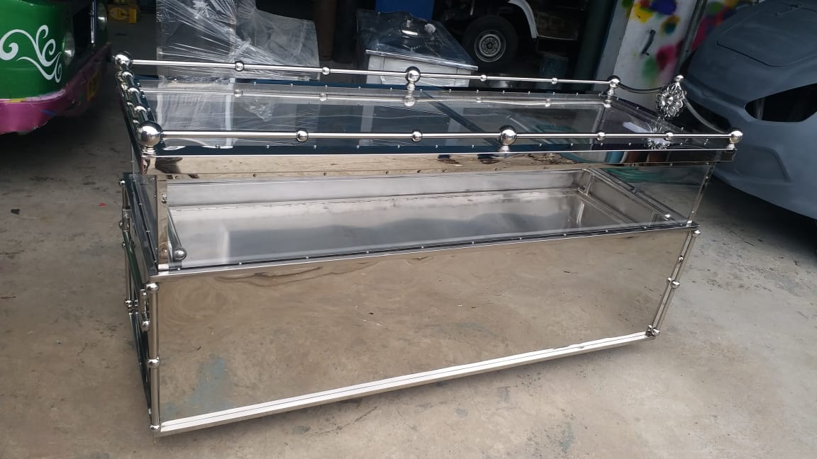 MC008 - SS Heavy is one of the model for manufacturing in our firm. This model Fabricated in stainless steel. In This model we fit the Heavy Compressor(Emerson copland). in this dead body freezer Top glass having Square type with flower design. In this model Cooling type is 5 side & Having Structure inside. R134 A gas used for refrigerant. CFL & LED Lights fitting inside Chamber & LED Light fitting Outside the box. Digital Temperature Controller with Display. fit Wheels for Flexible Moving.