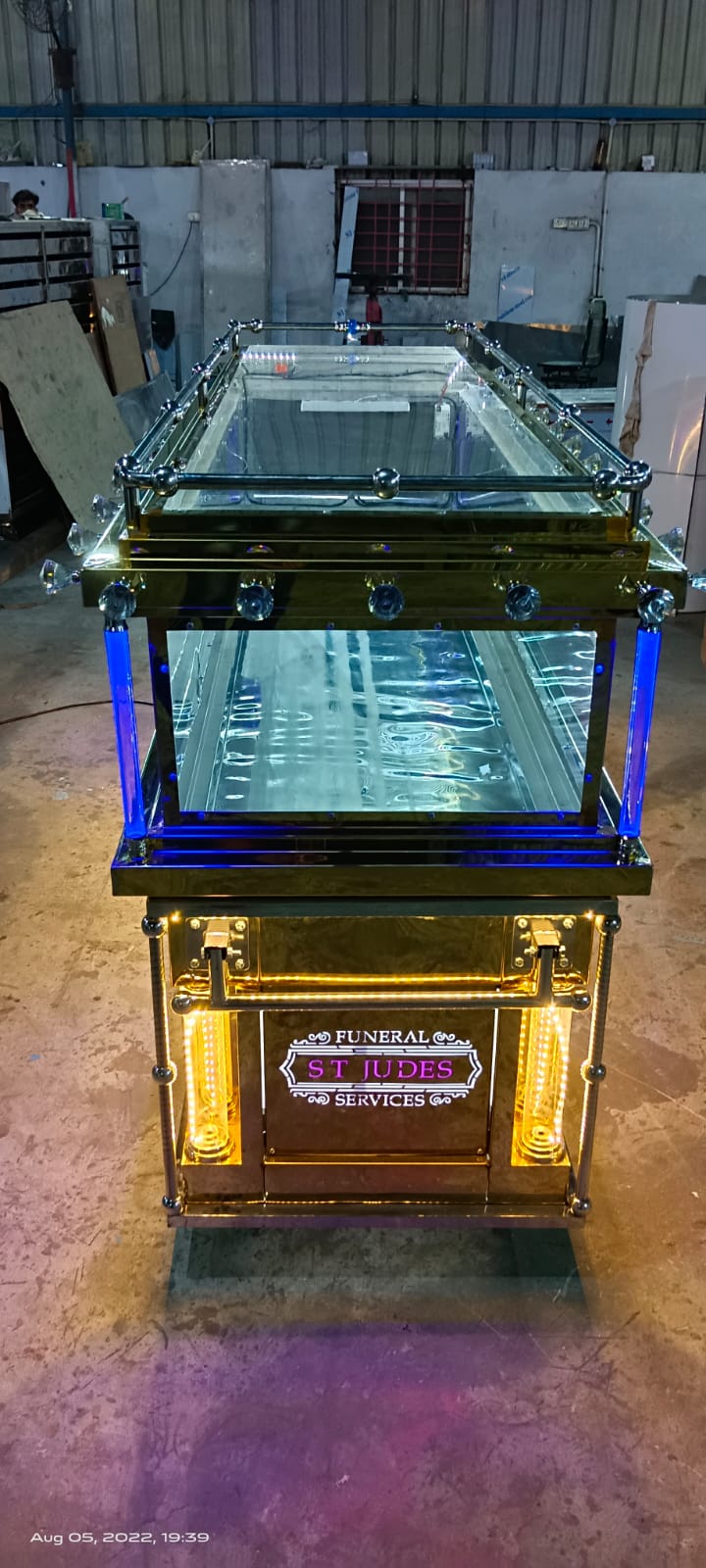 We are manufacturing the MC 008 Gold Grand VIP Laser Cutting Model in Gold Stainless Steel Single Dead body freezer also. In this model fully fabricated in Gold Stainless steel mirror finishing. In MC 008 Model we use Poly Carbonate sheet glass & the glass has top & side view. we fitted Emerson Copland branded Compressor & give 1 year replacement warranty for that. Copper coil & puff insulation is used for cooling purpose. R134A Gas is used for refrigerant. In this model we fitting CFL & LED Lights inside the chamber & fitting digital temperature controller with Display. In our all dead body freezer has water drain at all stages. We give 1 year warranty for all our products when manufacturing defect comes only .This warranty not applicable for Customer defect.
