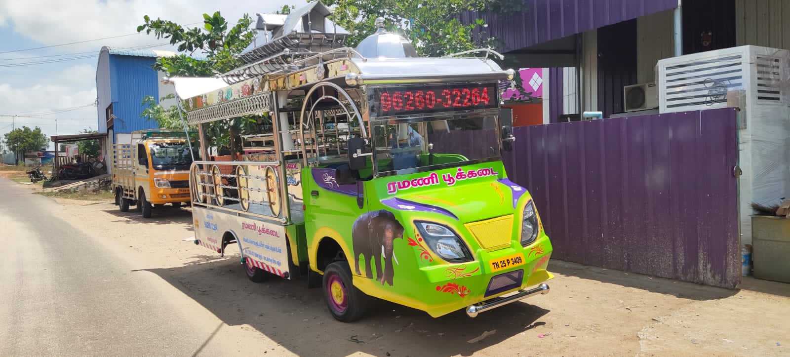 This Sorgaratham is our another one of the Model . This Sorgaratham fabricated fully in Stainless steel sheets & pipes And Stainless Sheet Mixing.This Sorgaratham model top design Temple Model. Platform we use aluminium Checked sheets. We delivered the Sorgaratham with audio set, Multi Color LED Lights, Painting & Stickering.(As per choice)