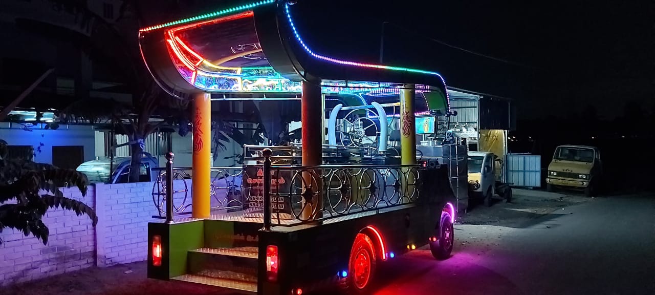 This Sorgaratham is our another one of the Model . This Sorgaratham fabricated fully in MS Sheets & Stainless Steel pipes Mixing.This Sorgaratham model top" S "design Model. Platform we use aluminium Checked sheets. We delivered the Sorgaratham with audio set, Multi Color LED Lights, Painting & Stickering.(As per choice)