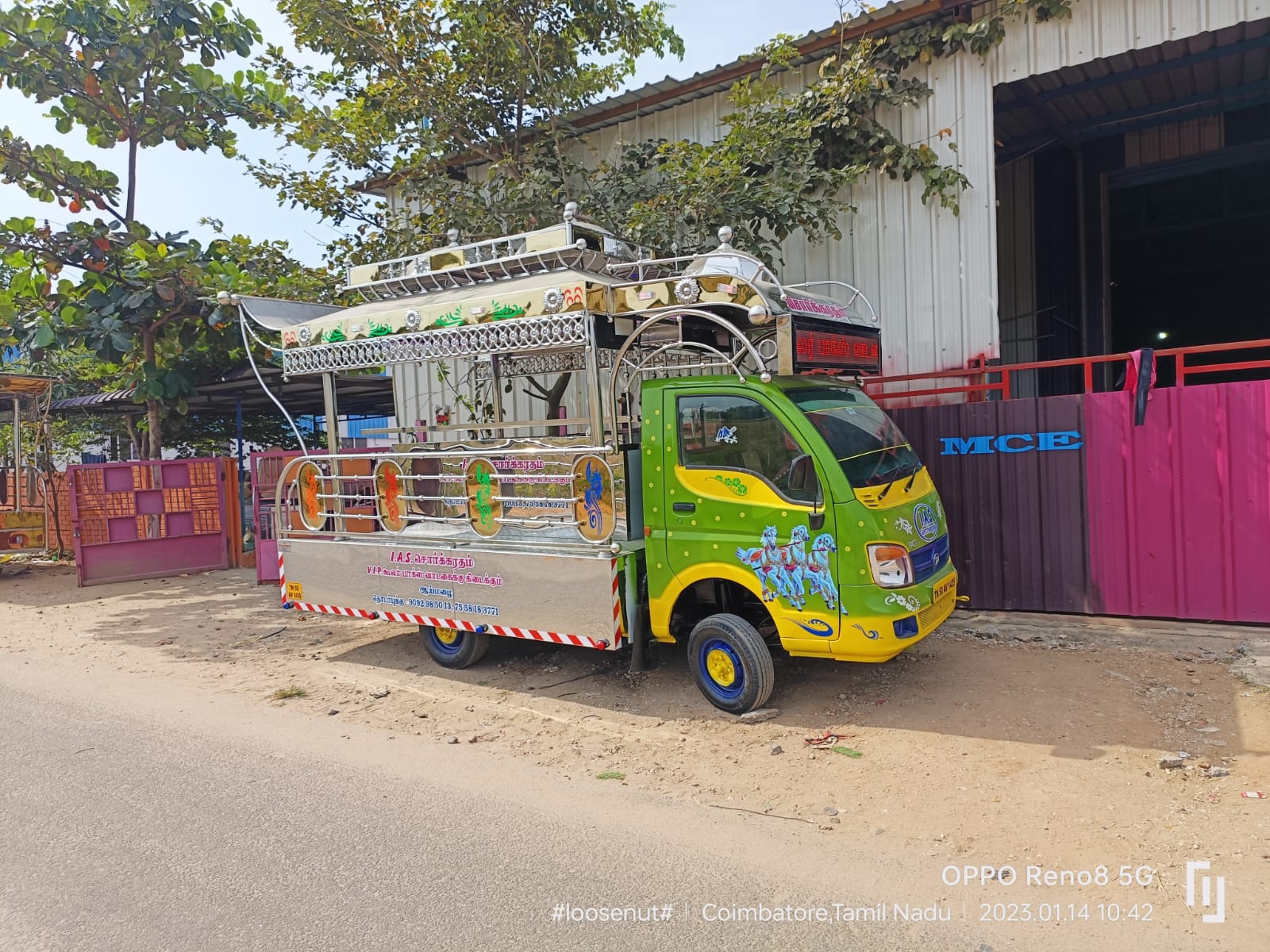 This Sorgaratham is our another one of the Model . This Sorgaratham fabricated fully in Stainless steel & Stainless steel sheets & pipes And Stainless Sheet Mixing.This Sorgaratham model top design Temple Model. Platform we use aluminium Checked sheets. We delivered the Sorgaratham with audio set, Multi Color LED Lights, Painting & Stickering.(As per choice)